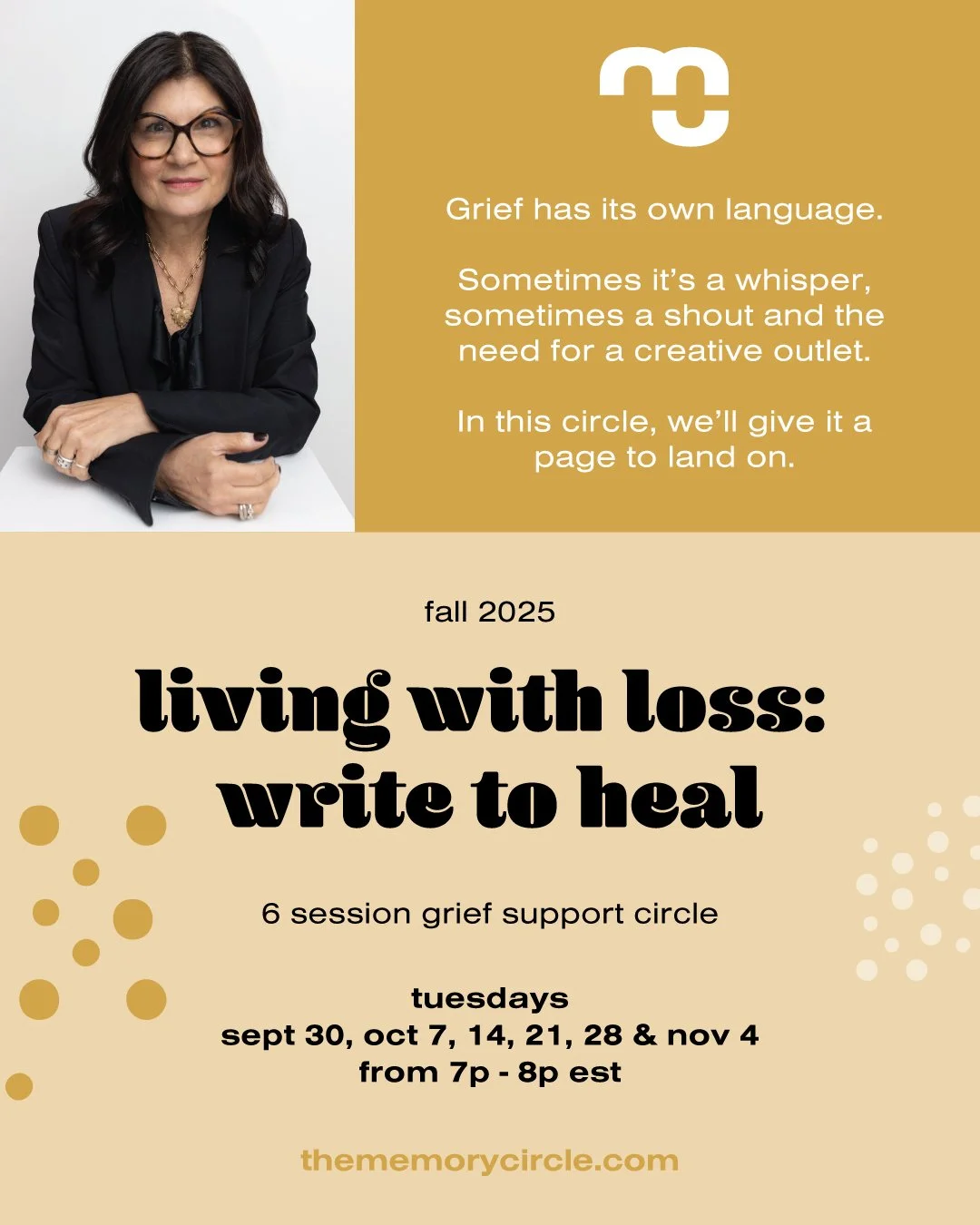 the memory circle is a space and place to be with your grief. whether it’s been days or a decade, the memory circle is here to accompany you on a healing and feeling journey. explore the coping tools and techniques needed to craft your own grief tending kit. as you move through and forward in this experience you will adapt and adopt the foundational philosophy of our work together: we don’t get over our grief, we learn to live with loss. let’s do this together. it’s warm inside.